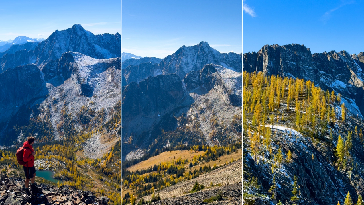Reaching the summit of Triple Peak requires navigating exposed fourth- to low fifth-class scrambling, with the Southeast Ridge being the most accessible route. While the rock quality is generally solid, the final ascent demands careful route-finding and comfort with exposure. Many climbers opt to use ropes for safety during both ascent and descent. The summit rewards climbers with panoramic views of the surrounding alpine landscape. Given the technical nature of the climb, it's recommended for those with alpine scrambling experience.