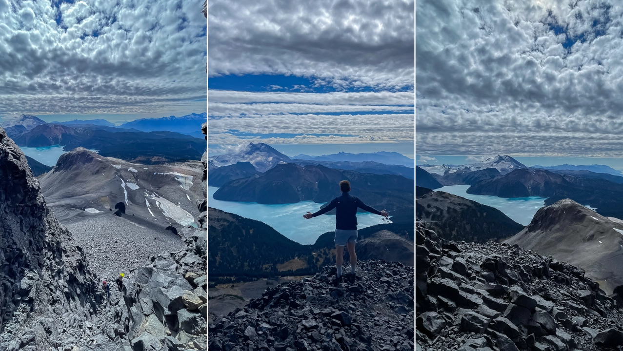 The payoff is enormous. As you move past James Peak, David Peak, and the subalpine basins that follow, you’re gifted with breathtaking panoramas at every turn and glimpses of Garibaldi, Sky Pilot, and the sparkling blue of Deeks Lake far below. One of the most rewarding aspects of doing HSCT in a single day is the sense of solitude; what is typically a two- or three-day trek for most becomes a fluid, continuous dance with the terrain when done in one go. With alpine meadows, steep talus slopes, narrow ridges, and high passes constantly shifting underfoot, this route keeps you fully immersed and alive in the moment. Crossing the final descent into Porteau Cove, legs burning and heart full, there’s a deep sense of awe, not just at the beauty of British Columbia’s wild terrain, but at what’s possible when preparation, willpower, and passion for the mountains come together.
