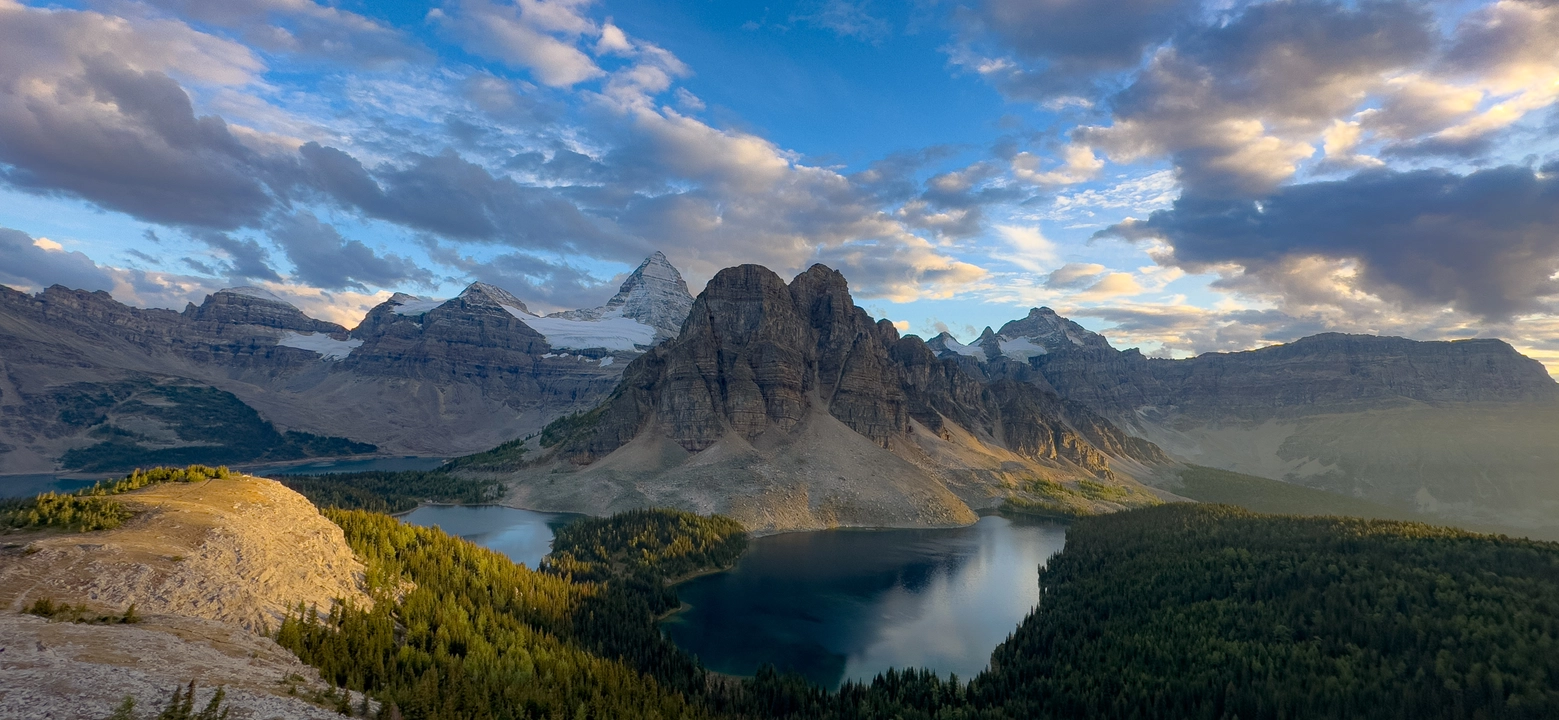 Assiniboine Pass Route: This is the most straightforward and commonly used trail, starting from the Mount Shark Trailhead. The route spans approximately 25.5 km with an elevation gain of 766 meters and is typically completed in 8 to 11 hours. While the initial segments traverse dense forests, the trail opens up to alpine meadows and offers glimpses of surrounding peaks as you approach the pass.