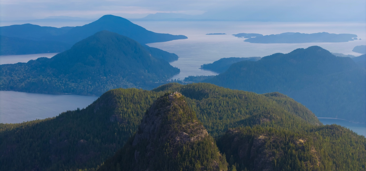 At the summit, hikers are rewarded with breathtaking 360-degree views, including vistas of Mount Garibaldi, the Tantalus Range, Sky Pilot, and the Sunshine Coast. The island's rugged terrain and the surrounding fjords create a sense of isolation and tranquility, making it a perfect spot for reflection and appreciation of nature's beauty.