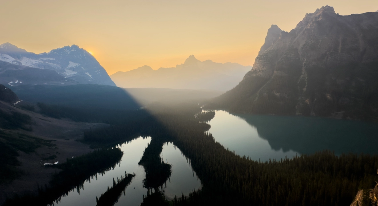Hiking to the Opabin Prospect in Yoho National Park offers one of the most iconic sunset viewpoints in the Canadian Rockies. The trail begins at the southwest corner of Lake O’Hara, ascending via the West Opabin Trail through larch forests and alpine meadows to reach the Opabin Plateau. This moderate hike covers approximately 5.9 km round-trip with an elevation gain of about 250 meters. From the plateau, a short side trail leads to the Opabin Prospect, a rocky outcrop that provides breathtaking panoramic views of Lake O’Hara, Mary Lake, and the surrounding peaks, especially stunning during the golden hours of sunset.
