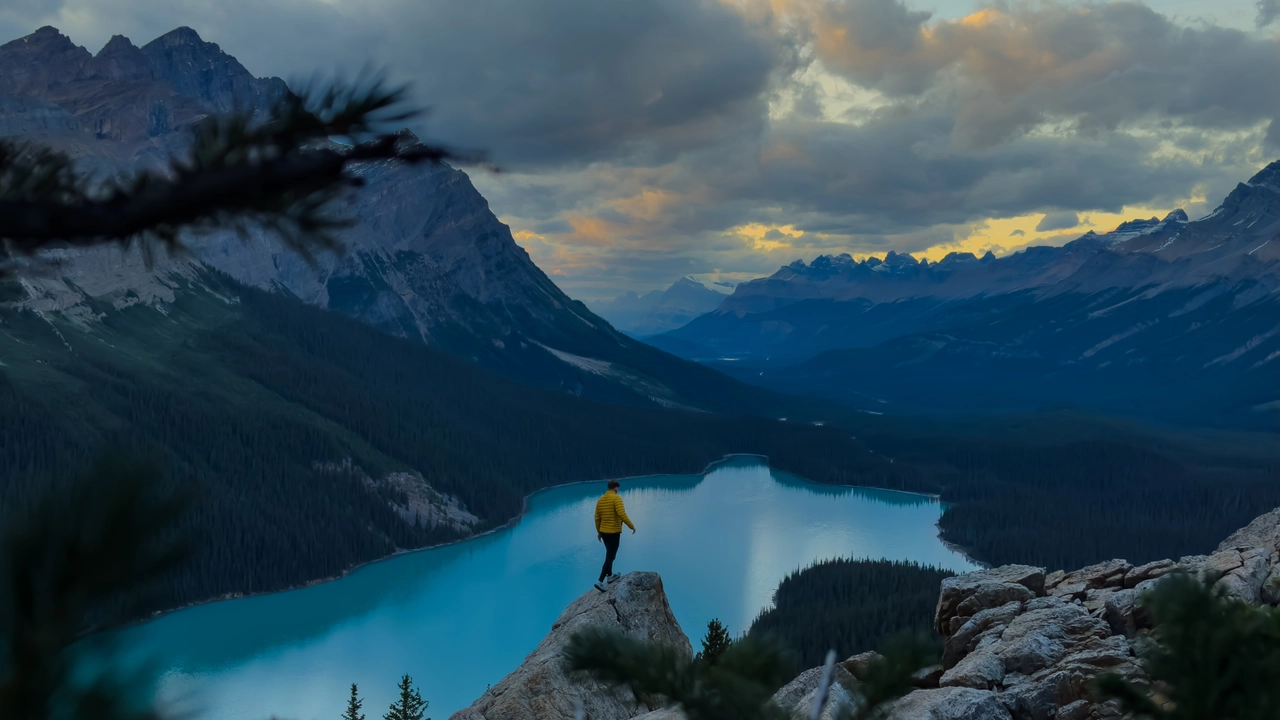 If you’re chasing epic sunset views in the Rockies, Peyto Lake is a must. This place is straight-up stunning and especially when the sky lights up in golden and pink tones as the sun drops behind the peaks. The lake’s unique wolf-head shape and glowing turquoise colour make it feel almost unreal. The best part? The main viewpoint is only a 10–15 minute walk from the parking lot, and the paved path makes it accessible even for folks with limited mobility. There are also a few short trails nearby if you want a quieter spot to soak it all in. Trust me, watching the light fade over this landscape is something you won’t forget.